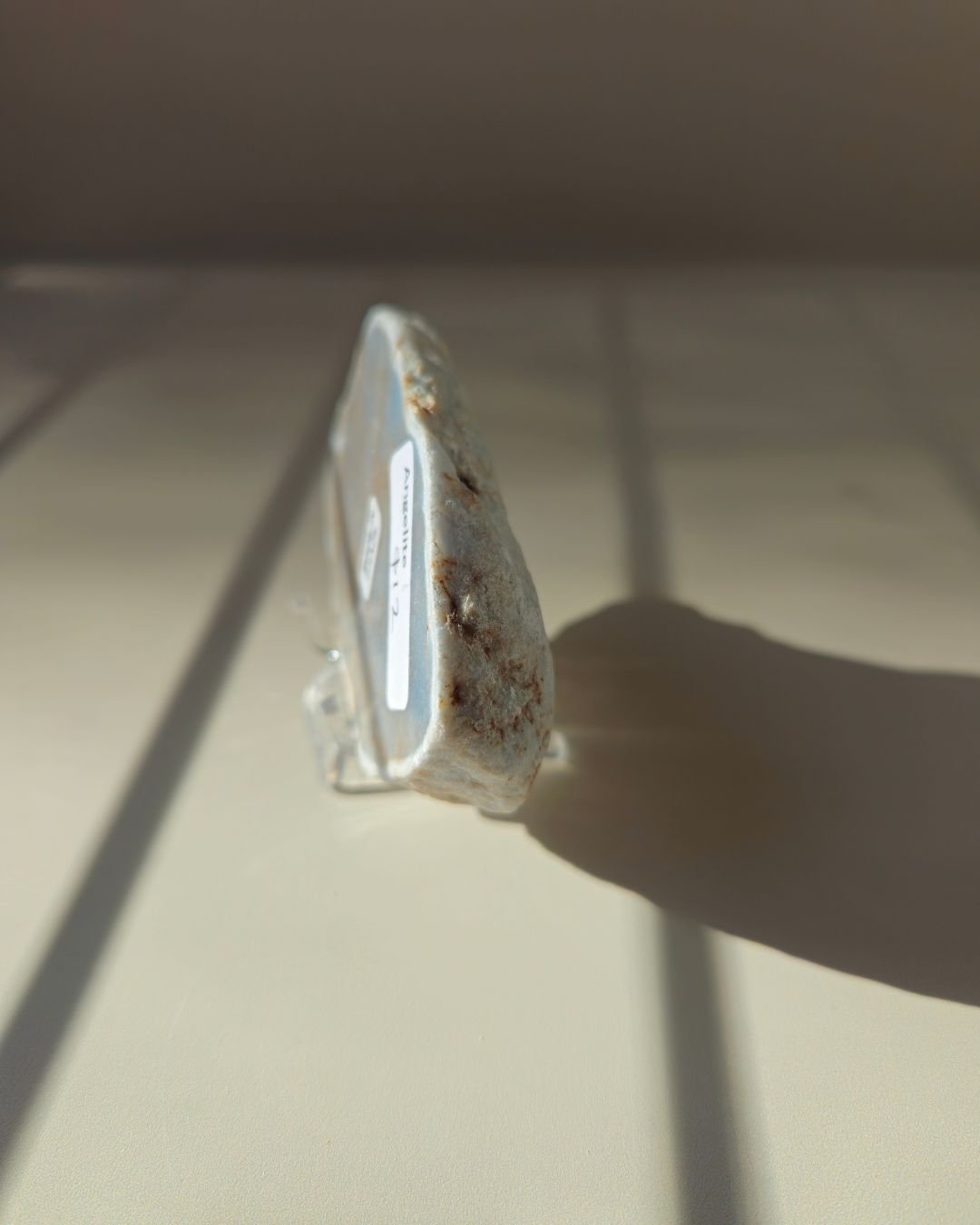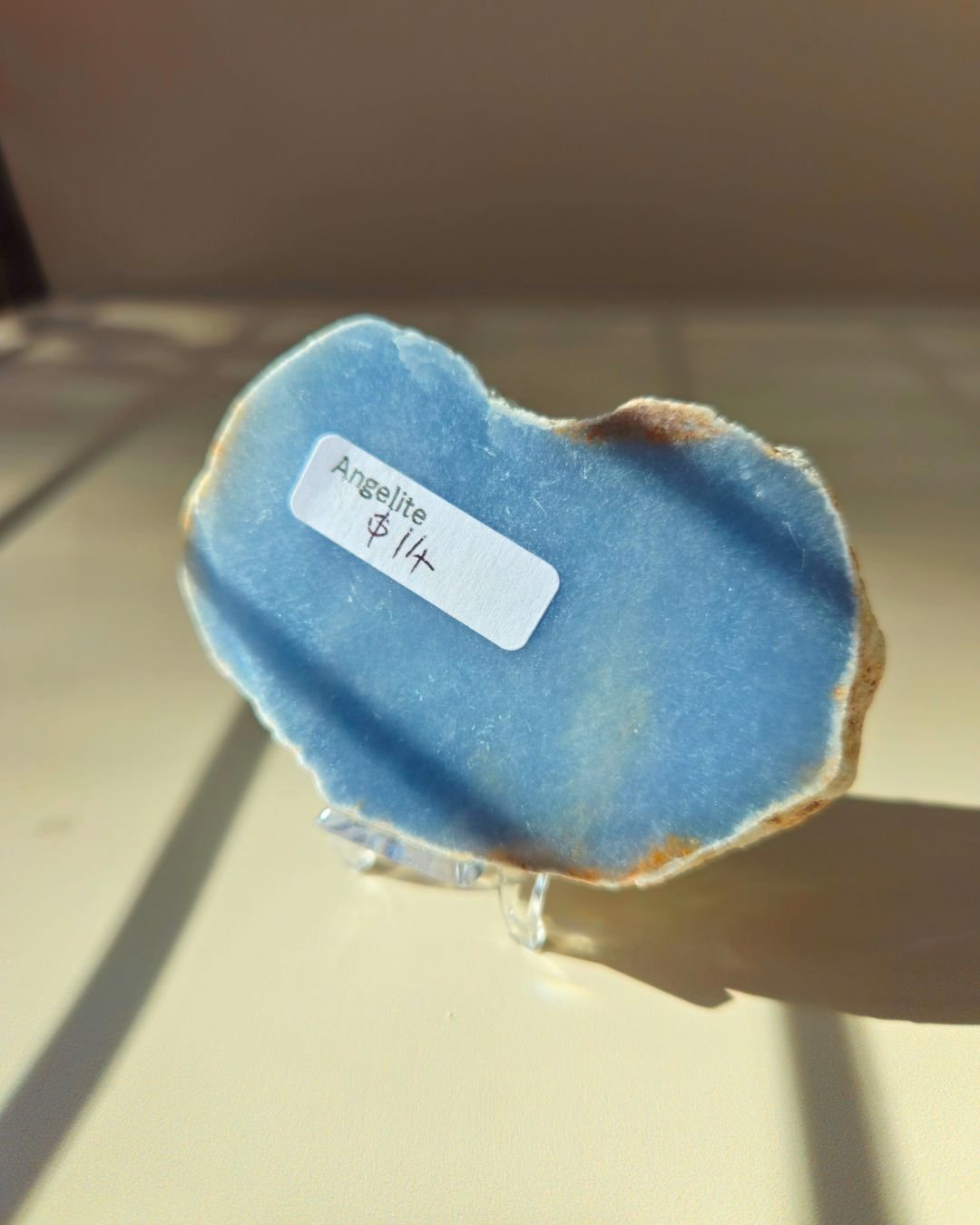 How to Use Your Angelite Piece: Hold it during meditation to deepen your practice, place it on your bedside table to encourage restful sleep, or keep it in your workspace as a calming anchor throughout the day. Its polished face makes it wonderfully soothing to run your thumb across during moments of stress.